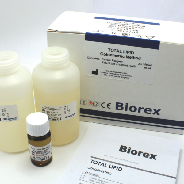 The Biorex Diagnostics Total Lipid test is intended for the quantitative determination of the total lipid index in serum using the sulfo-phospho-vanilline colorimetric method.