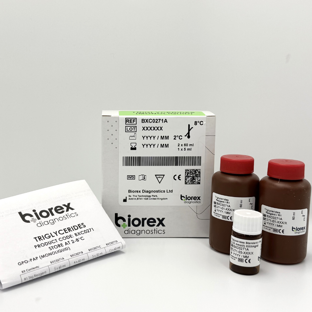The Biorex Diagnostics Triglycerides Assay is a ready-to-use quantitative test for the measurement of triglycerides in human serum and plasma, providing essential information for assessing lipid metabolism, nutritional status, and cardiovascular risk.