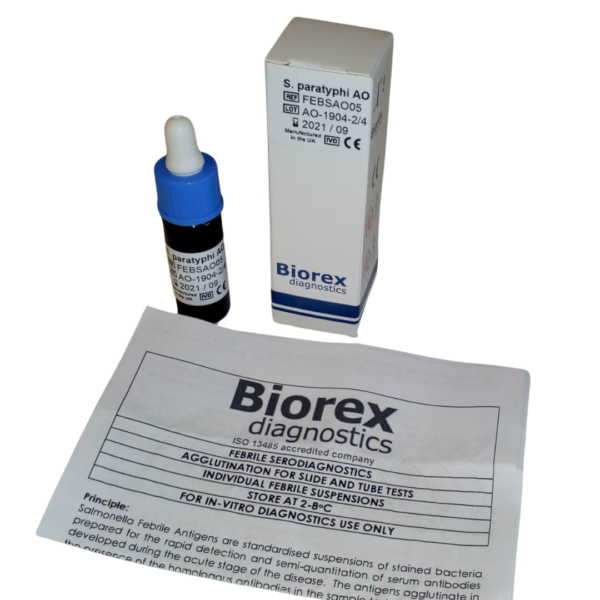 The Biorex Diagnostics have developed Salmonella Paratyphi tests for Salmonella Parathphy A-H,A-O,B-H.B-O, C-H amd C-O.